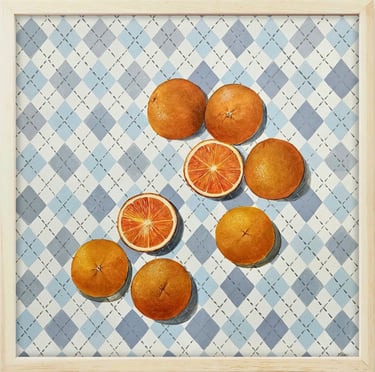 Currently, my paintings follow a modern still-life approach, featuring meticulously interwoven plaid patterns within natural yet detailed compositions that celebrate simple pleasures: a shared breakfast, the morning light, a familiar daily activity, or the quiet beauty. Altogether, they invite viewers to pause and find happiness in the simplicity of life.