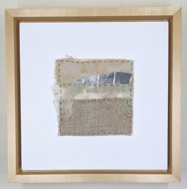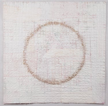 ANSWER 1. When I sit down to my Stitch Meditation it takes me a few moments to settle in as I choose my fabrics and thread my needle. The moment I first apply my needle to the soft fabrics I feel the shift in my body. My shoulders relax, I take a deep cleansing breath, and a blanket of quiet stillness fills my brain. My busy analytical left hemisphere is quickly bored of the soothing rhythm of the stitch and as it quiets all the to-do chatter, I can hear the quiet voice of my right hemisphere-the connected, intuitive self.