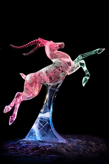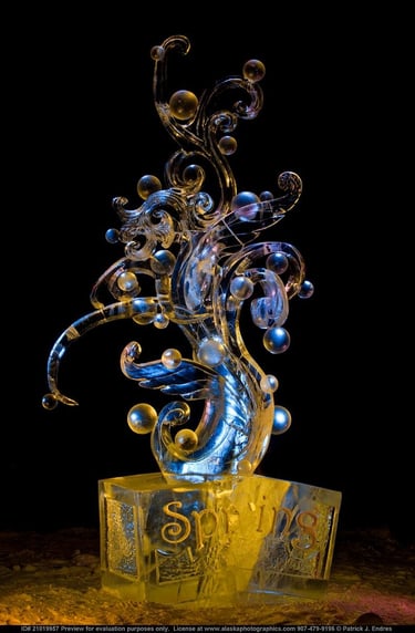 ANSWER 3. All mediums that are carved share some qualities. What sets ice carving aside is the refractive angles that are created catching the light in ways that only ice can. Also since it carves fairly easily, works can be created relatively quickly.