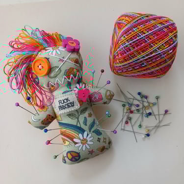I call my creations Emotional Support Voodoo Dolls. I make them out of unwanted fabrics, they're a hand size big and contain a magnet inside. Their purpose is to write your troubles on their little chest tag and one pin a day, send the bad mood away! They are only stress relievers and are not in any way meant to do harm. They have helped many overcome their problems in life and some therapists even use them in their sessions. I've been making them for 7 years now, and it gives me joy because they help people by making them laugh, and happiness is something we must treasure in life, even if it's just for a brief moment.
