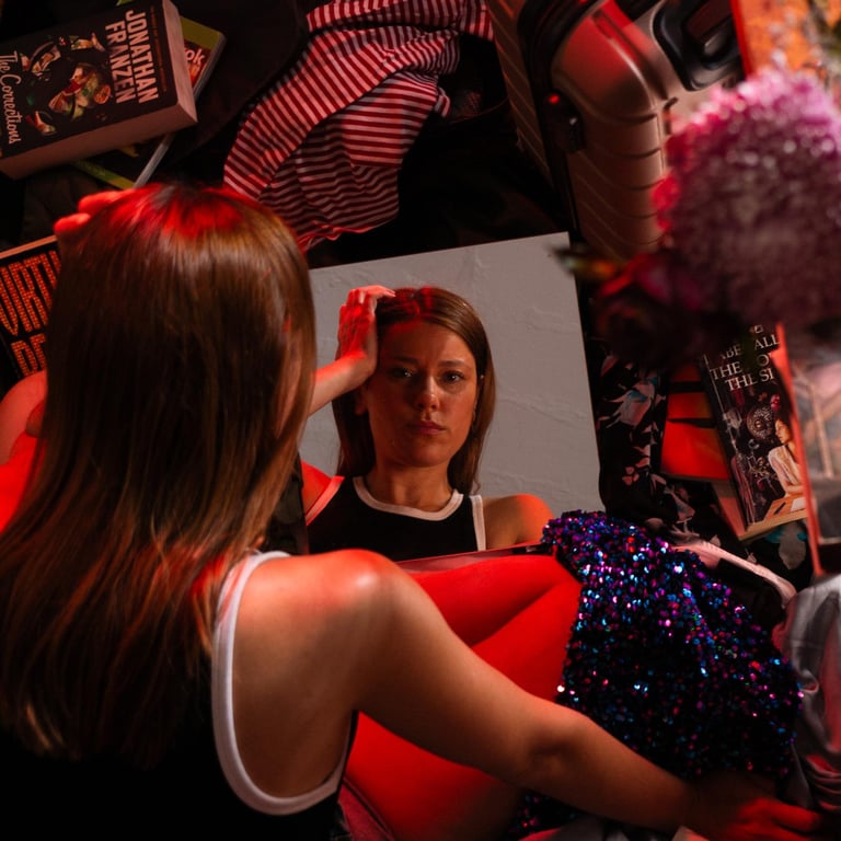 ANSWER 2. Life itself is one big frontier between truth and imagination. My perception — my loves, my hates, my traumas, my desires — shapes the way I see reality. And the same goes for every person. Each of us carries a singular vision of the world that somehow converges into something “real” for everyone. I Have a Flight to Frankfurt at Half Past Ten plays with that in a way that’s both tragic and humorous. The only unquestionable truth is that she has a flight to Frankfurt at ten-thirty. Everything else might be invented. And for each of us, what would be that one undeniable truth, the one irrevocable fact that sustains our entire existence?