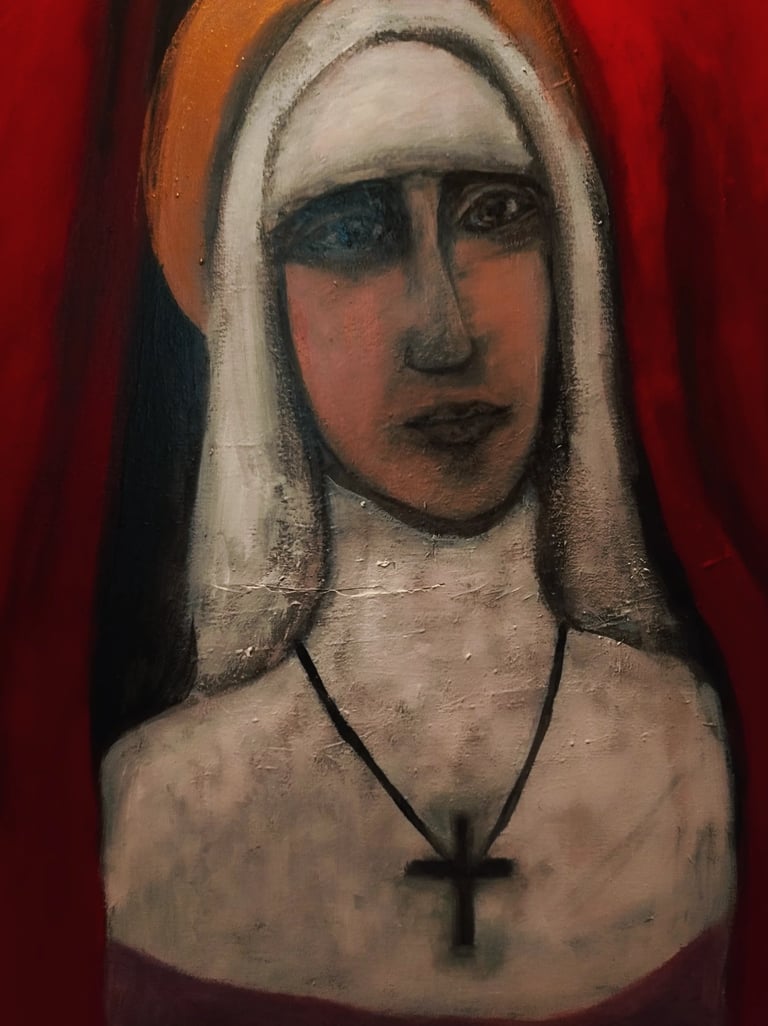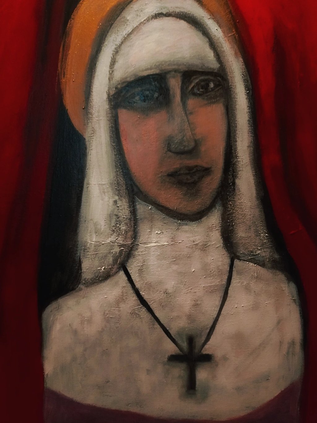 Red Curtain Series - Saint, 2025, 72cm x 60 cm