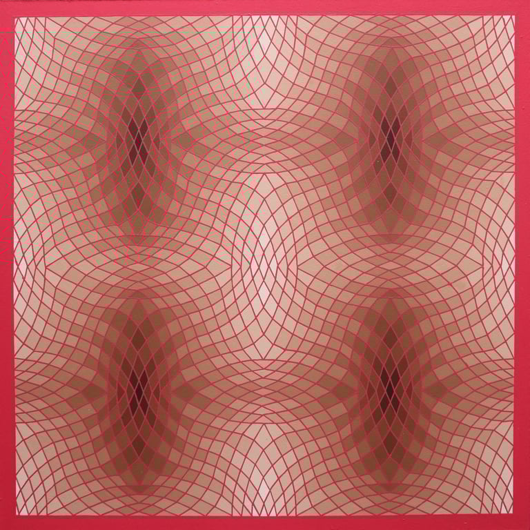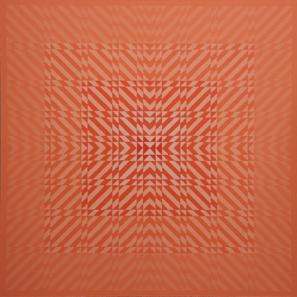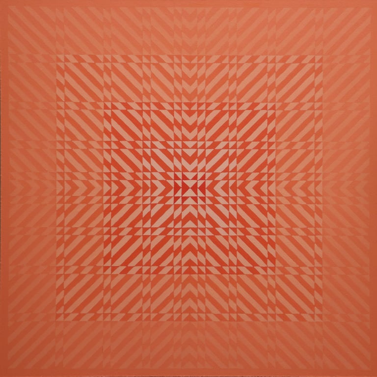 BIO: Male, aged 71, living close to London, UK. I’ve been painting for my own enjoyment, in a geometric abstract style, since I discovered the work of Bridget Riley in 1970 when I was 16. I was in an art education course at the time and wanted to paint like that in class, but the tutor was saying ‘No, paint this vase of flowers’ or ‘No, draw this feather’ so I left and got a job while painting what I wanted, when I wanted, how I wanted. Thus, I am mainly self-taught.