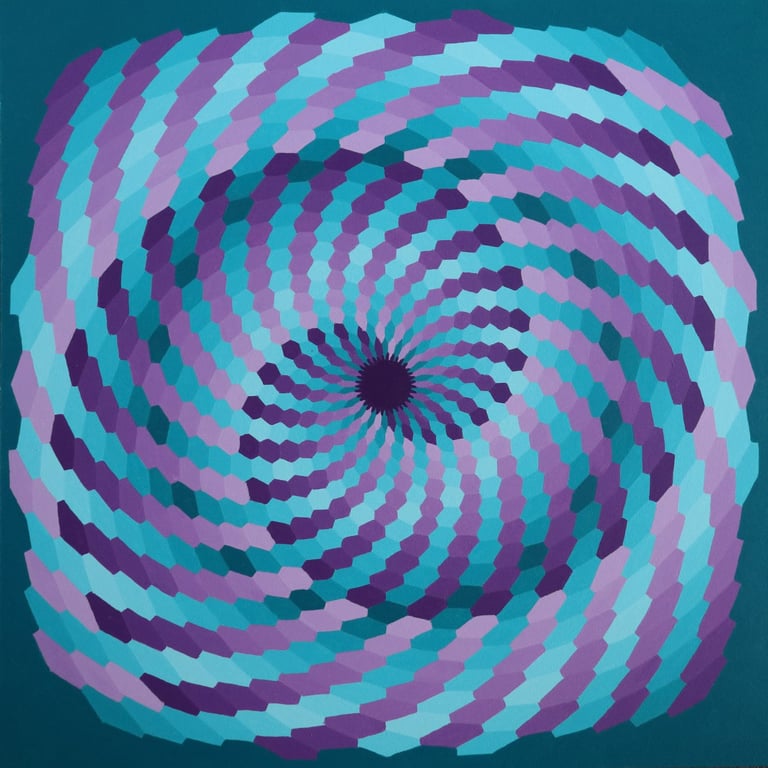 QUESTION 2. Many of your works juxtapose subtle and bold color shifts to amplify or soften optical motion. How do you approach color selection when aiming for a specific perceptual effect?