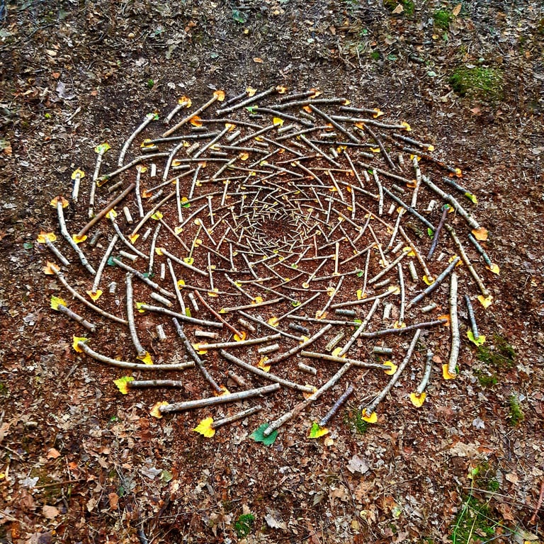 BIO: Winston Plowes is based near Mytholmroyd in the Calder Valley where he lives in his floating home on the Rochdale Canal with a deaf white cat, Abigail and his spiritual advisers Maureen & Ringo, two elderly Canada geese. He makes nature art (land art) using any of nature’s resources that come to hand. His art responds directly to his surroundings, evolving from a random incident, growing from a seed of thought or a preparatory sketch. Winston’s art owes its life and death to a light breeze, the onset of rain or simply the passage of time. The more he works in this genre the more he has become aware of transience and loss and wonders if his practice as an artist could help him, and others learn valuable lessons about how to process ideas of impermanence. His work has featured on TV and has been published in numerous online and physical journals as well as featuring in exhibitions and gallery spaces. He teaches art in schools and to adult groups.