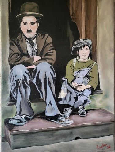ANSWER 1. For "The Kid" on the Charlie Chaplin portrait, I looked for the no hope, all's lost appeal, but because of "The Kid" maybe hope is still prevalent even if its hard to admit.