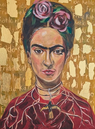 “Inner Icon”, 2023, acrylic & gold leaf on canvas, 20 × 24 in