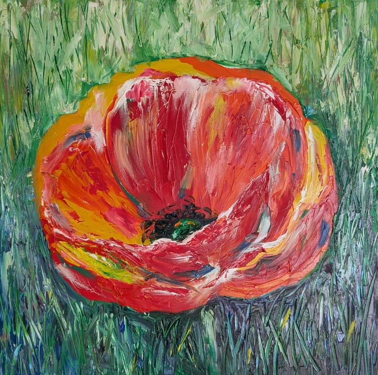 "Red Poppy”, 2024, acrylic on canvas, 16 × 16 in