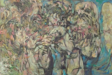 Painting in art has progressed from perspective to flatness, and with modernism, the truth of painting was revealed. But I'm not talking about the full canvas of modernism. My work is limited to objects. And the Objects overlap, and what's behind them is semi-transparent, like an X-ray. Cubism has a variety of perspectives on its object, and it has no time or space.Also, my painting work is one in which time and space do not exist. For example, when expressing a sculpture of a person, Cubism expresses the object from multiple perspectives rather than just one, but I unfold the object. Then, there is no need for space and time to see the back of the 3D sculpture. This is how Cubism and my working style do not align, I unfold the object and draw its appearance.