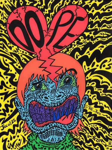 “DOPE-A-Mine”, 2025, Posca markers on watercolor paper, 9x12