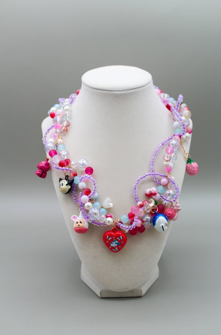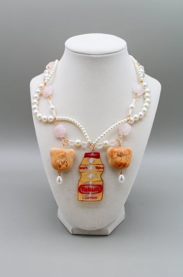 Chinatown: "Asian Snacks" Necklace, 2025, Polymer clay and shrink plastic, 16 inches