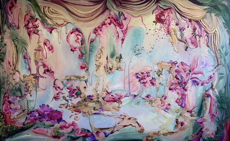 "High Tea Soiree", oil on linen, 60" x 96", 2025