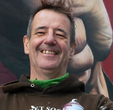 Since then, I have taught myself to paint freehand with spray, masonry, household emulsion and mural paints and have worked for the likes of Sky Arts, Arsenal FC and The Royal International Air Tattoo. I have also run The Cheltenham Paint Festival for 10 years; an international renowned festival that draws 150 artists from around the world to paint murals in my hometown