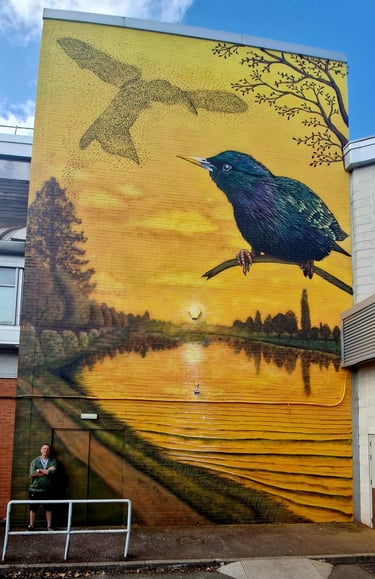 BIO: My journey to becoming a commercial mural artist was not the conventional one. My journey began whilst teaching young adults with learning difficulties and behaviour problems. When a qualification I was teaching included some furniture upcycling, I learnt to make stencils to facilitate the pupils in my care putting them on their furniture. Later, a student asked if they could paint a local bus stop wall and we went about gaining permission and creating a design. As a guardian of the wall, I put a stencil of my daughter on the wall. When someone put this on Reddit, it went viral and catapulted me into people’s attention.