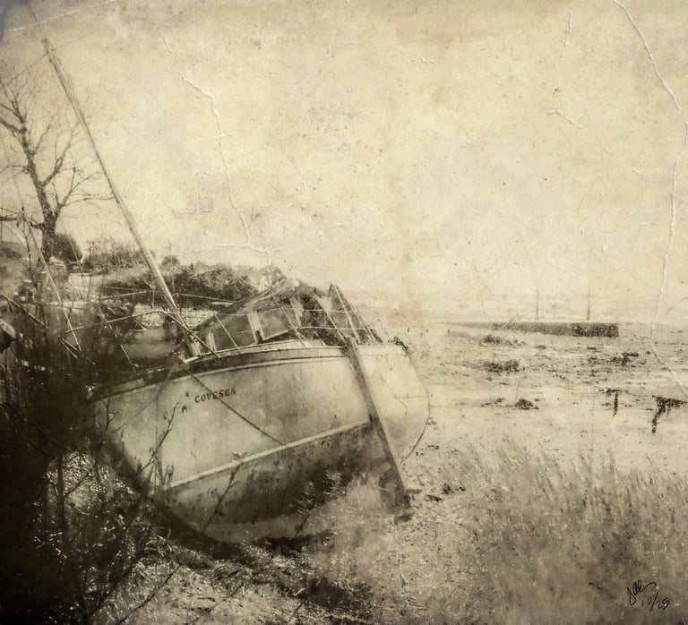 ANSWER 3. Eudora Welty famously worked in both the mediums of photography and writing. While she claimed that the two were, for her, parallel and not directly connected, she also said that making pictures taught her that “every feeling waits upon its gesture”, that being prepared to recognize a single moment worth documenting was something necessary to her writing. By taking a photograph, I stop time and capture a single moment, place, person, or scene. This becomes the record. But I don’t stop with just making the picture into a piece of artwork. I research and read and learn about whatever it is that has captured my attention in the photograph. If I truly believe that my attention was drawn there for a reason, then it is incumbent on me to understand why, and what I’m supposed to gain by it. The photo “Covesea” is an example of this. I was wandering down by the old riverbed in Portree on the Isle of Skye when I spotted several apparently abandoned boats mired in the sand and the muck and the weeds, leaning haphazardly, paint worn off and tarps hanging askew. The idea of abandonment and a return of man, in all his follies, to the sea or earth is a concept that I’ve explored many times with my camera. I didn’t notice that one of the boats was named “Covesea” until I began to work with it. This name had been significant enough to the boat’s owner for him to paint it on the side of his boat. It meant something; it was important. So, I began to research it. Pronounced Cow-see, this name also refers to a series of sandstone caves, accessible only by boat, located on the south shore of the Moray Firth, between Burghead and Lossiemouth in north-east Scotland--to the east of the Isle of Skye on the opposite shore of Scotland. In prehistoric times, these caves appear to have been considered as liminal spaces caught between worlds. Perhaps the man, a fisherman, had originated on the shores of the Moray Firth, and perhaps he had come to the Isle in search of a better living. Perhaps his ancestors, and mine, are represented in the human remains that have been found in the complex of caves. The Late Bronze Age, to which the remains have been dated, defies the ability for any genealogical research, but I’ve long considered that history is a degree of fiction in and of itself, and this would make a great outline for short story into which I can pour the details and knowledge and understanding and interpretation.