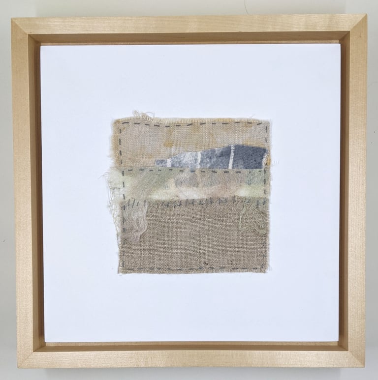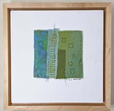 ANSWER 1. When I sit down to my Stitch Meditation it takes me a few moments to settle in as I choose my fabrics and thread my needle. The moment I first apply my needle to the soft fabrics I feel the shift in my body. My shoulders relax, I take a deep cleansing breath, and a blanket of quiet stillness fills my brain. My busy analytical left hemisphere is quickly bored of the soothing rhythm of the stitch and as it quiets all the to-do chatter, I can hear the quiet voice of my right hemisphere-the connected, intuitive self.