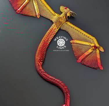 BIO: For as long as I can remember, I’ve been chasing art in various forms. I like to work with my hands, but I also like to capture light. Chainmail is the perfect combination of the two: metal is shiny, even when it’s covered in color, and each ring needs to be woven into place one at a time. With a pair of pliers in each hand, I open and close every single ring that goes into my work.