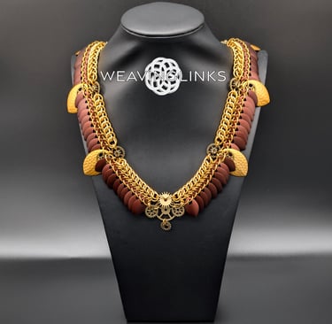 ANSWER 1. The purpose, definitely. When I design a new chainmail piece, I first decide what I want it to do, then I get an image in my head of how I want it to look. And then I sit down and experiment until the piece in my hands matches the image in my head. I love the challenge of making metal rings function the way I want them to, even when they often don’t cooperate.