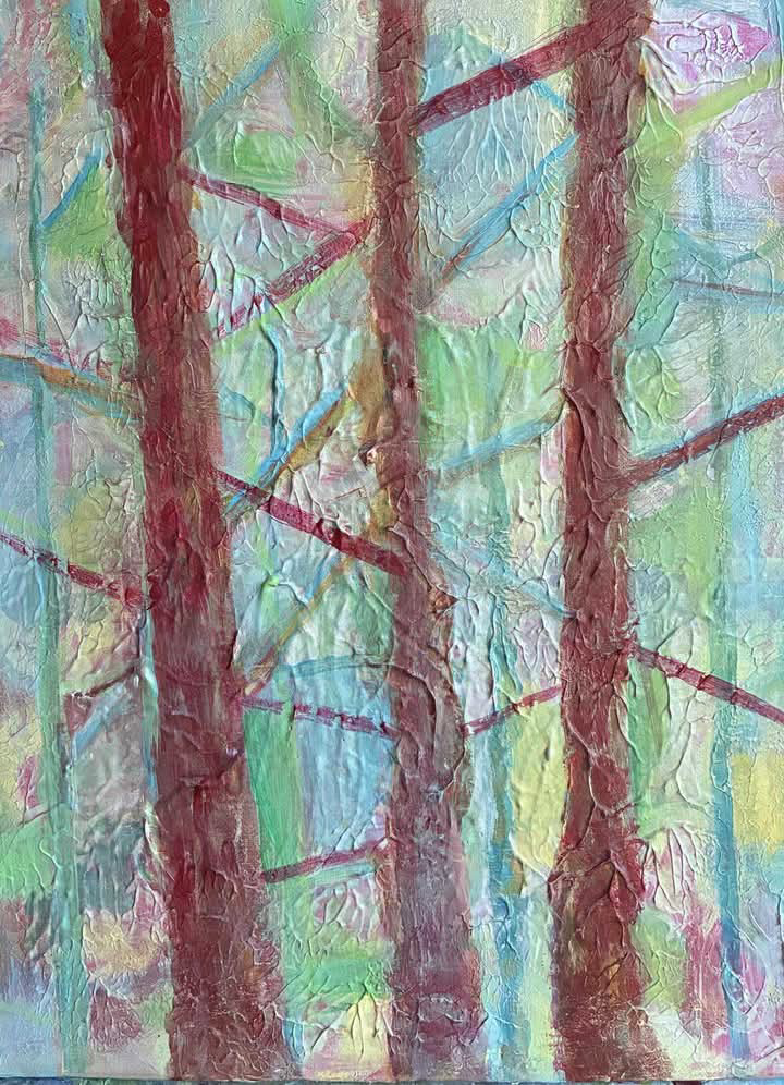 BIO: Lives in Syracuse NY, and calls herself a process oriented experimental painter, using personal icons, color and design in a unique way. Her work has been shown in NJ, NY, PA and FL and collected by art lovers.