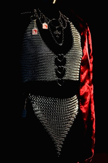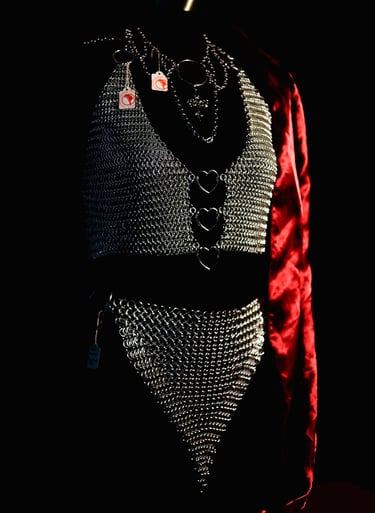 ANSWER 1. Historically, chainmaille was always about protecting a body in battle. When I design my pieces, I try to shift that idea from physical defense to personal power. These pieces are not meant to shield the wearer from harm, but to be seen as an assertion of strength, and visibility. It's about reclaiming armor as adornment and redefining protection as confidence, and self expression.