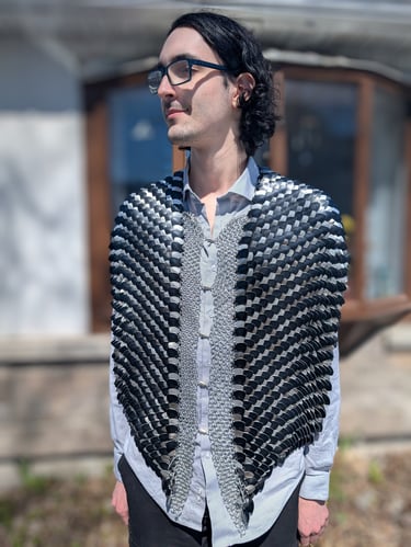 Vest - Anodized aluminium, two-size scale vest. Model - Shoghi Simon. 2025